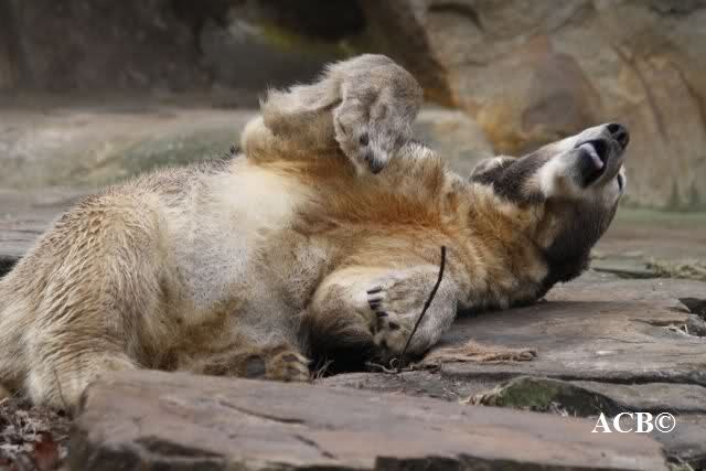 Knut legt auf dem letzten Foto eine sehr überzeugende Vorstellung von einen 'hungrigen, bedauernswerten' Bären hin.
