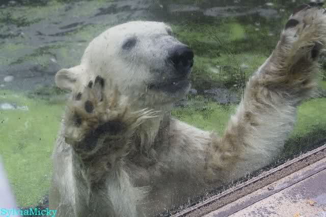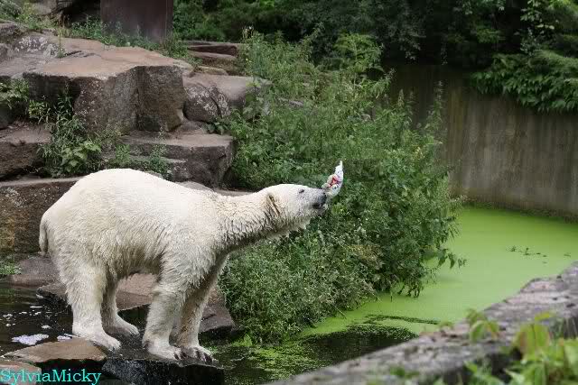 Genau, Gaby, da war Knut zwischen den Knut Shows für ca. 2 Stunden alleine auf der kleinen Anlage. Er musste es lernen, weinte allerdings sehr. Aber er hatte ja dann bald seinen *Papa* wieder.