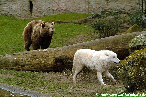 Polarwölfe und Braunbären waren heute zusammen. Sylvia hat es ja schon geschrieben. Vielleicht sollten sie nach dem Tod der Wölfin ein wenig Abwechslung haben. Das nutzten sie aus und ärgerten die Bären. Siddy musste ran.