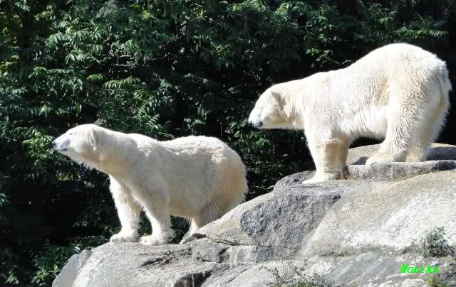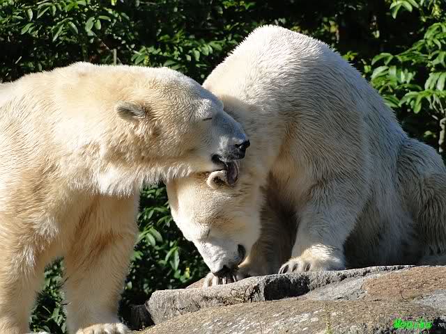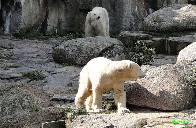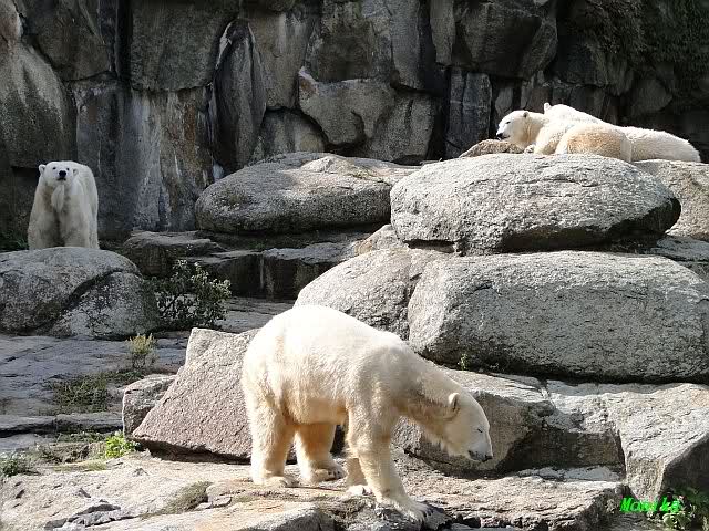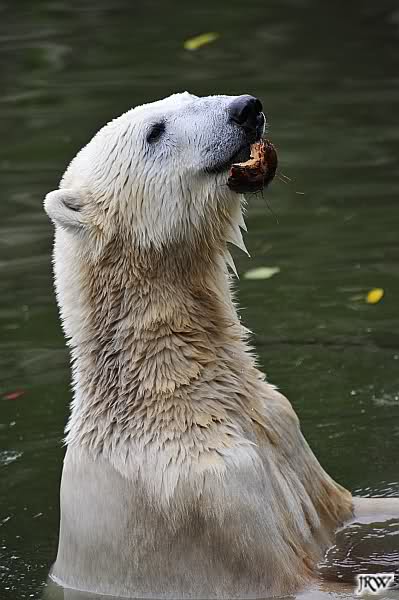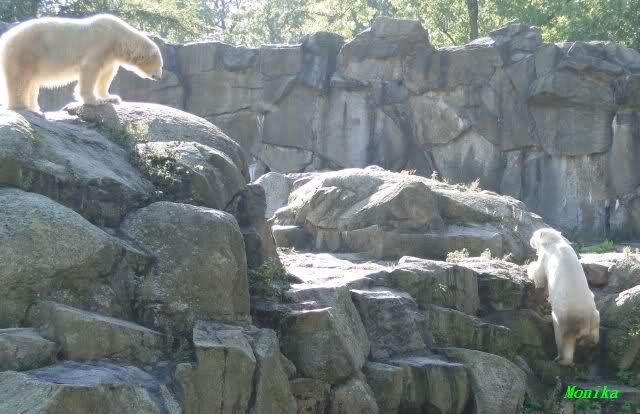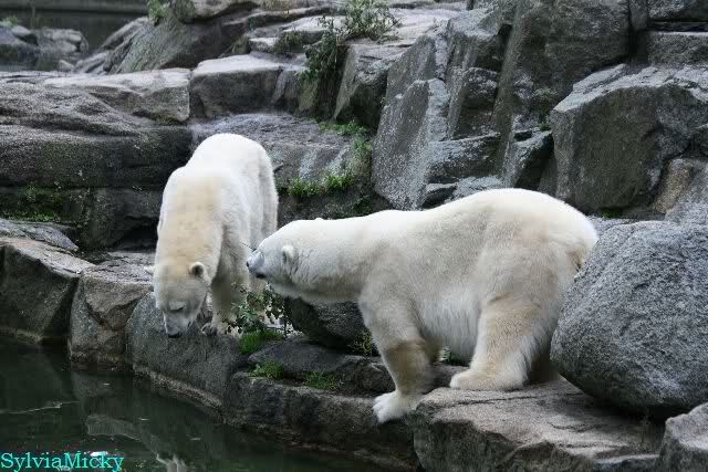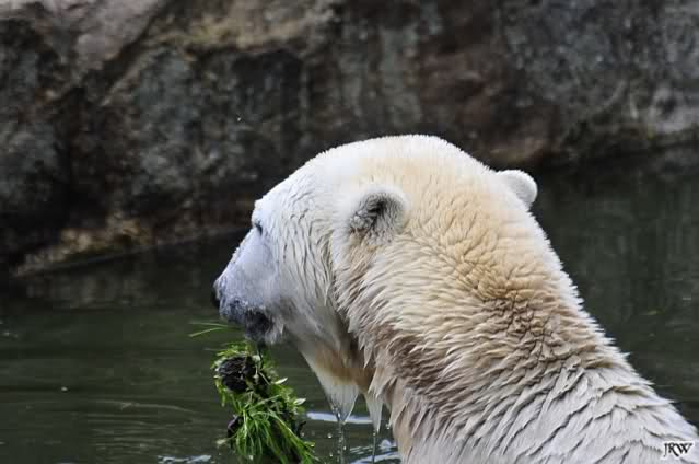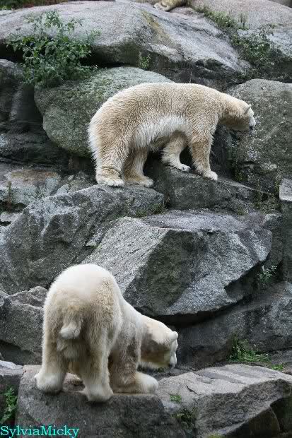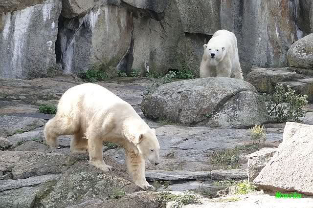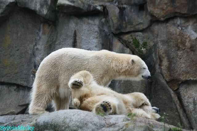 Hier sind noch einige Bilder von gestern. Es war nachmittags friedlich zwischen den Bären. Knut spielte viel im Wasser mit allem was er finden konnte. Irgendein Schwachmatiker hatte einen Kugelschreiber in das Wasserbecken geworfen und Knut spielte glücklich damit. Einige Leute fanden das sehr lustig. Auch Schwachmatiker.
