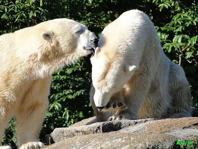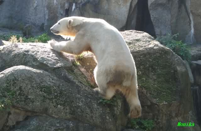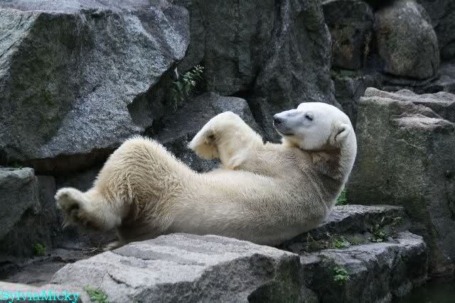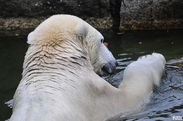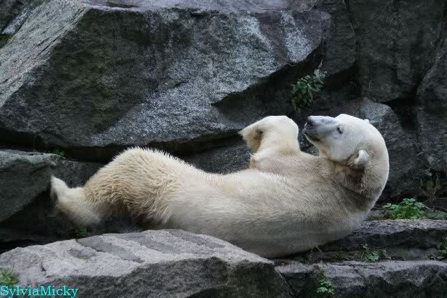 Danke auch heute wieder für die aktuellen Berichte und Fotos aus dem Zoo über Knut & Co. So richtig wohl fühlt sich der Bärenjunge auf seinem Platz an der rechten Seite der Anlage und im Wasser, incl. seinem Ausflug an die Scheibe.