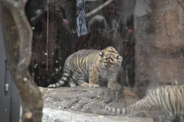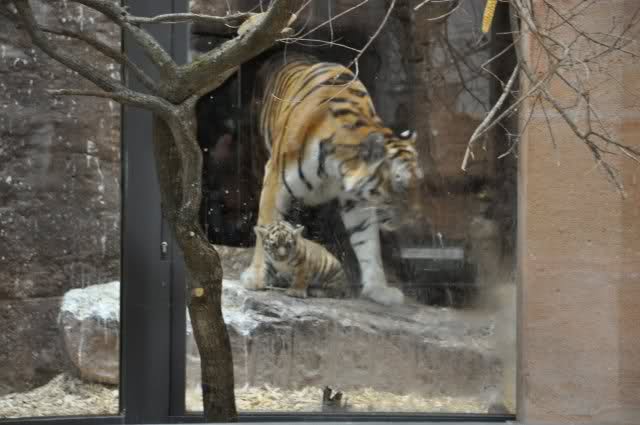 Mutter Tiger hat gemeint, dass ihr Nachwuchs für diesen Tag genügend bestaunt wurde und hat die Kleinen in die Grotte gebracht.
