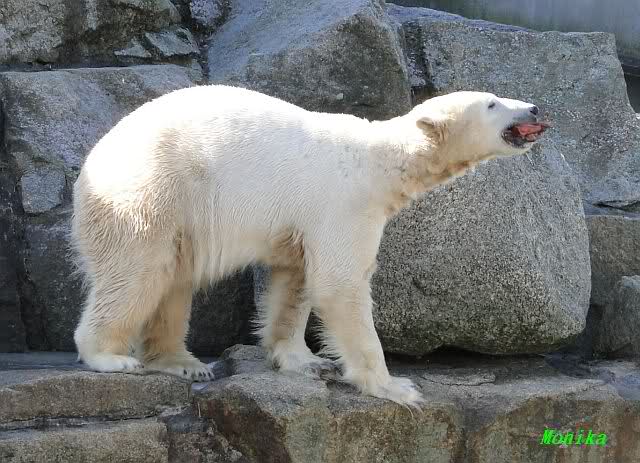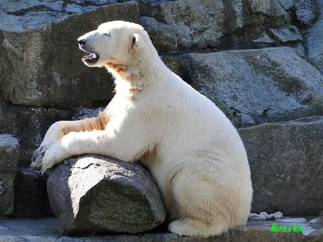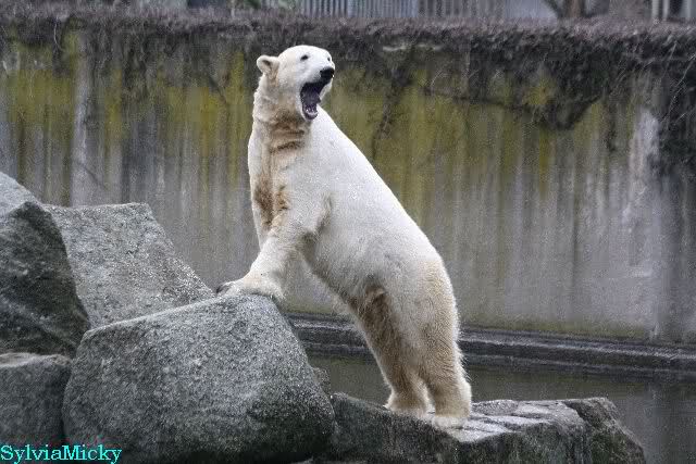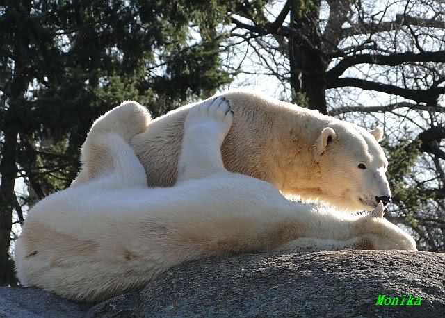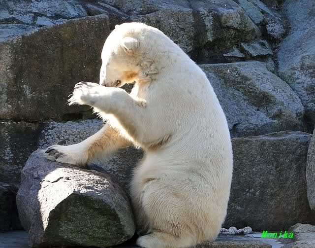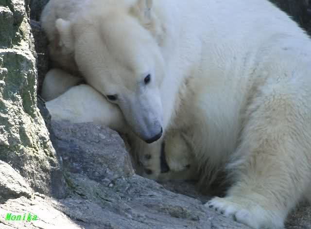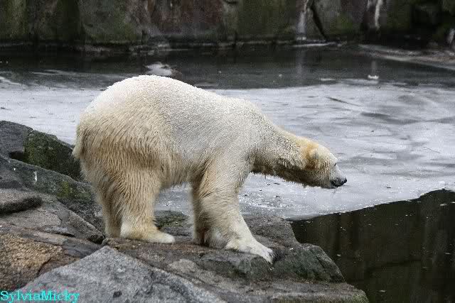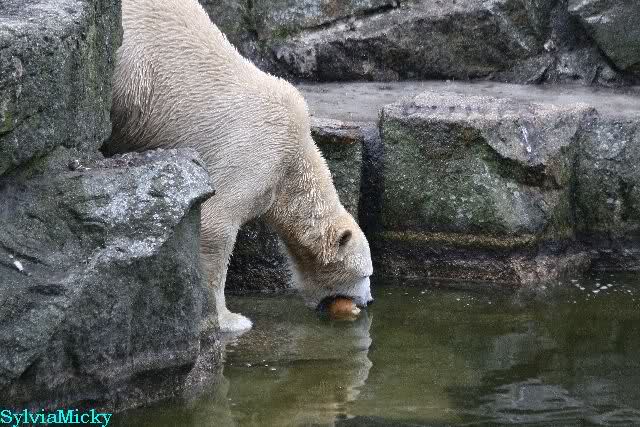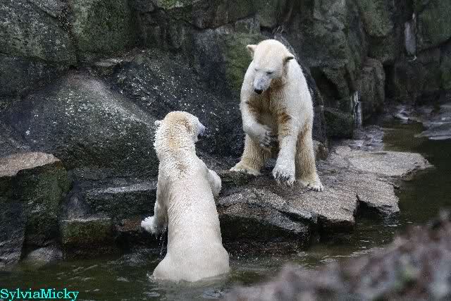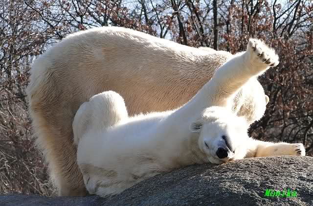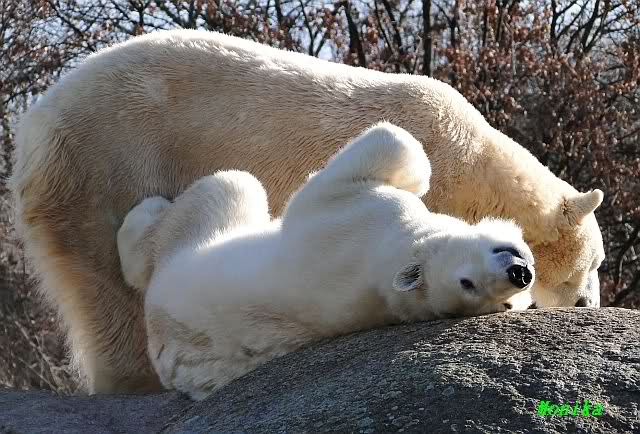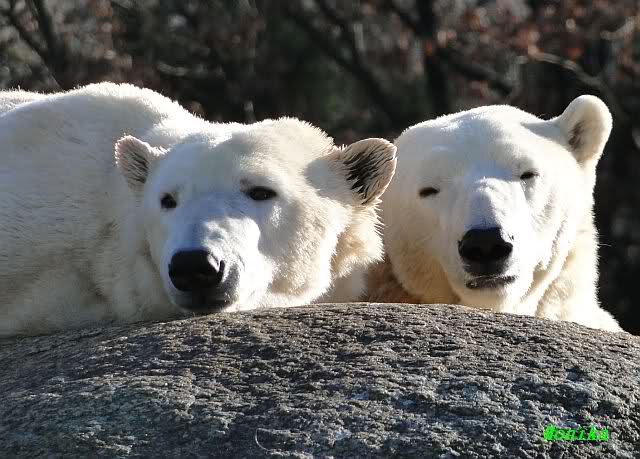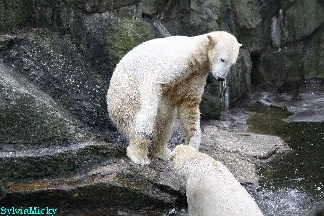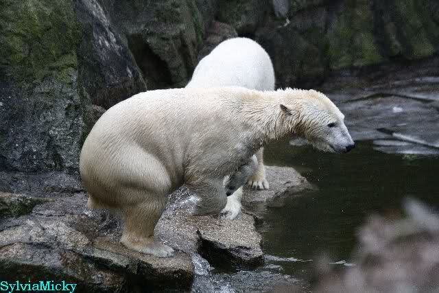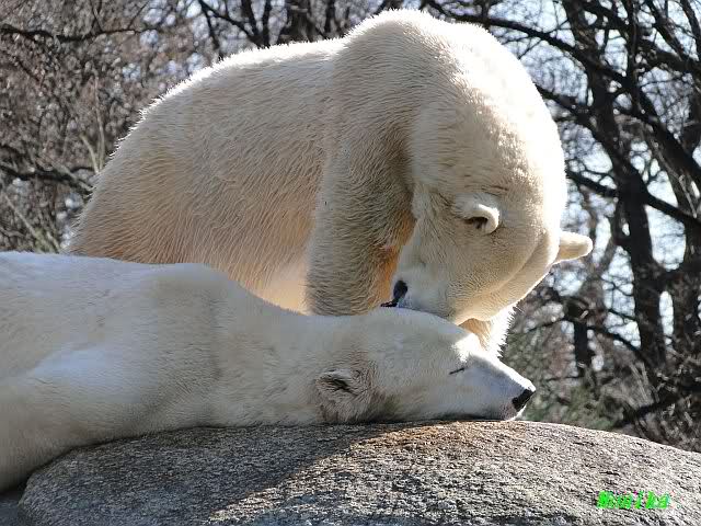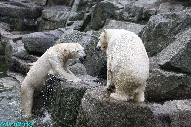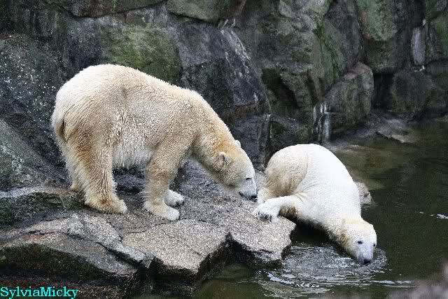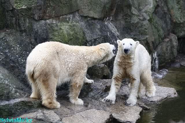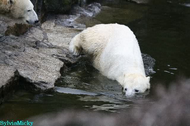 Nach dem gestrigen Toben war heute Vormittag Ruhe bei den Eisbären angesagt. Vielleicht haben sie sich ja auch die Energie für heute Nachmittag aufgehoben, um nachträglich für Hartmuth eine "Geburtstags-Vorstellung" zu geben. Ich denke mal, wir werden es später noch erfahren.