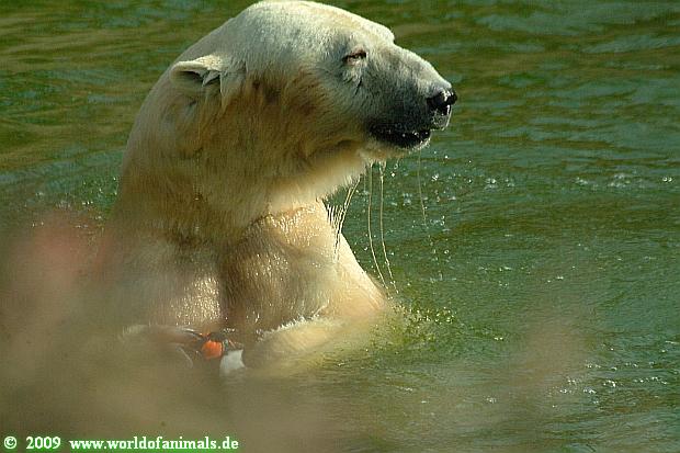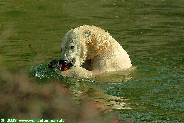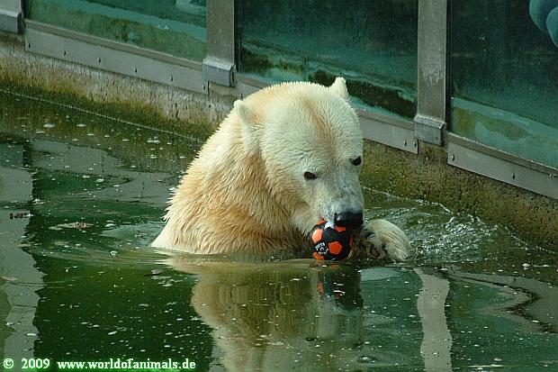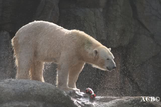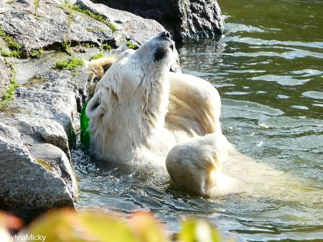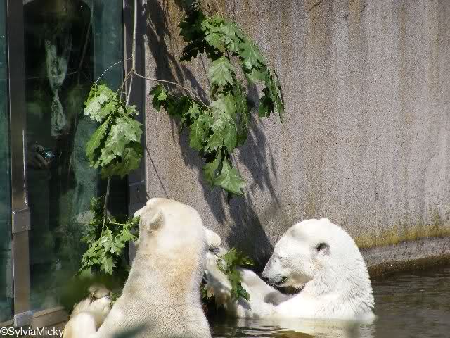 Und ob die großen Eisbären spielen würden, Doris, hätten sie nur genug Spielzeug. Das die Behauptung, die Eisbären in unserem Zoo spielen nicht, unrichtig ist, konnten heute sehr viele Besucher sehen.