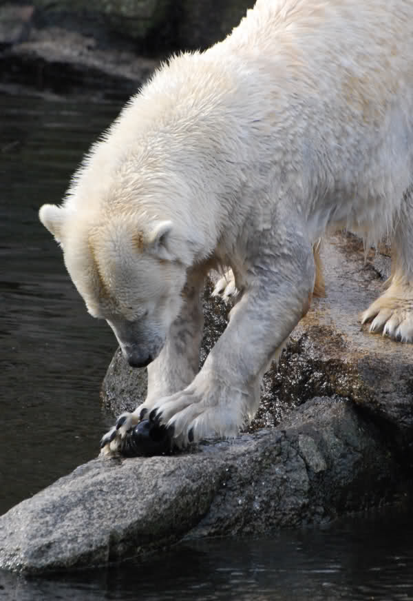 Einen Baumstamm zum Trockenschubbern gibt es auf der großen Eisbärenanlage leider nicht