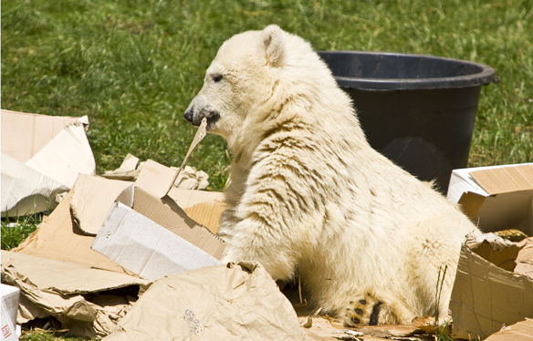Heute ist Putztag. Da hilft Flocke natürlich mit. Sie zerkleinert das Altpapier. Ihre Devise: Sich voll in die Sache reinbeißen und alles kurz und klein machen. Flocke zeigt uns, dass man auch mit Kleinigkeiten etwas für die Umwelt tun kann. (Foto: Ralf Schedlbauer)
