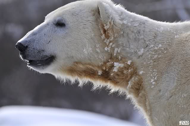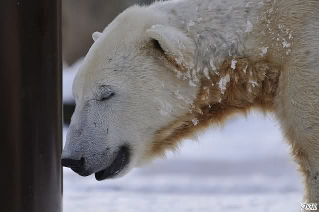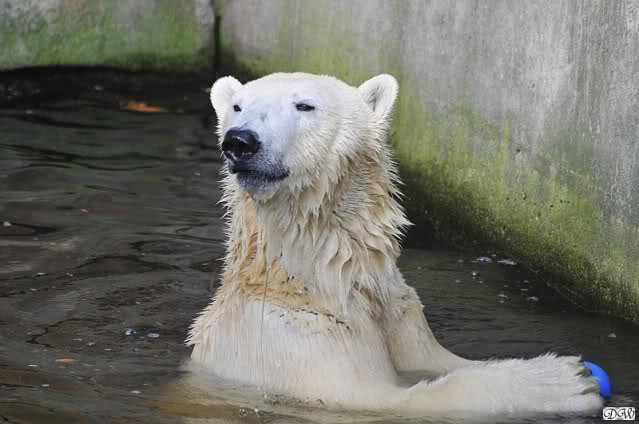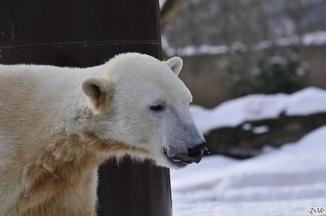 Doris, Patricia - Don't you understand that Knut is a trend maker and now the latest 'thing' is to wear the moustacheon the nose instead of under it!! In my opinion it looks very chic and charmant. I guess I need binoculars when I come to the zoo in April....