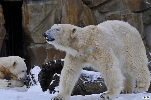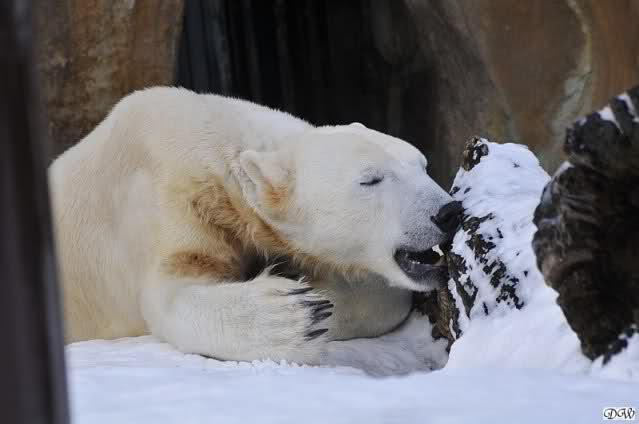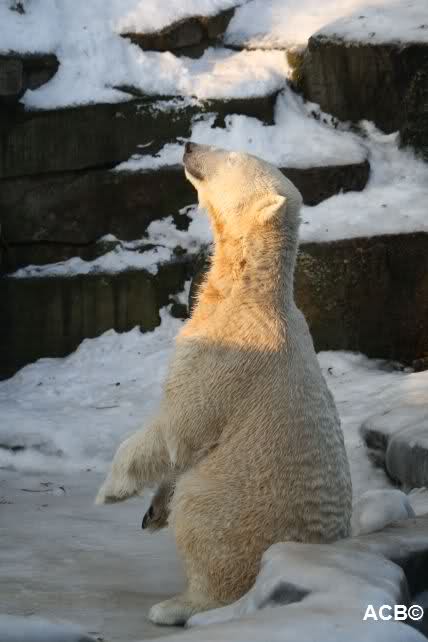 Heute früh lag der Zoo im strahlenden Sonnenschein. Der grauenhafte Schnee funkelte wie tausend Diamanten. Wie hätte ich mir das noch vor einem Monat gewünscht. Aber auch ich Wintermuffel muss zugeben, dass es ein schöner Anblick war und ein neues Lebensgefühl nach so vielen grauen Tagen.