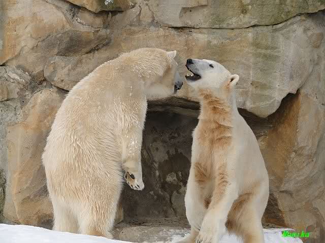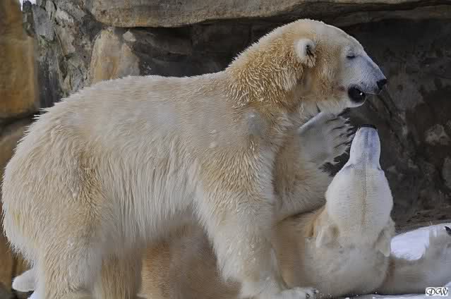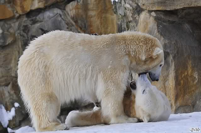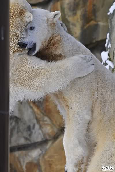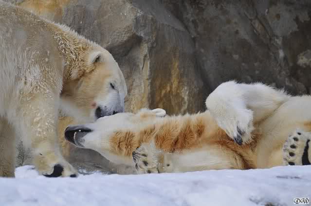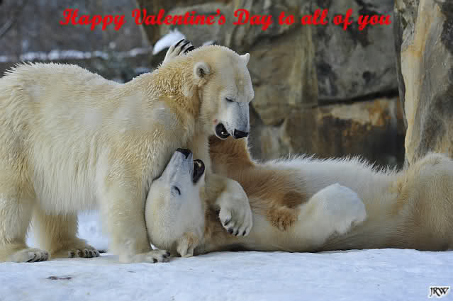 Knut legte sich vormittags immer sehr dekorativ in den Weg von Gianna und somit kam es zu vielen Treffen der Beiden. Knut genoss es ganz offensichtlich und immer wenn sie vorbei ging brummte er ganz leise. Nicht aggressiv sondern es war ein sanftes Grollen. Es wurde gerätselt was es wohl zu bedeuten hätte bis dann der Vorschlag kam: Won’t you be my Valentine? Wer weiß, vielleicht war es ja etwas Ähnliches.