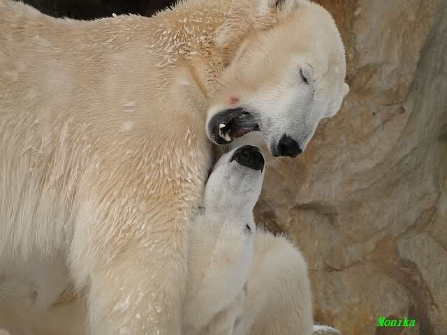 Auch wenn Gianna manchmal eine ganz schöne Ramboline ist, wenn Knut schläft nähert sie sich ihm langsam und stubst ihn ganz zärtlich an.