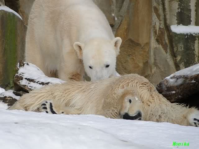 Aber ich wünsche Euch nun endlich Tauwetter, damit sich Knuts Freunde nicht dauernd auf die Nase legen. Monika, gute Besserung.