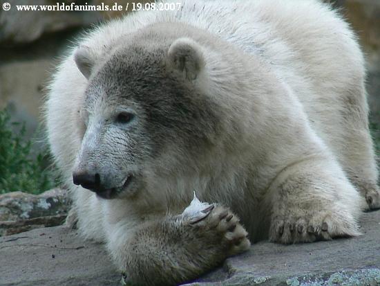 Man stelle sich vor, die Knut Freunde haben auch nur den kleinsten Verdacht, daß *der Zoo* sich auch sorgt ums Tatzenlutschen, was dann wieder los ist. Die Postfächer laufen über, die Telefone stehen nicht still, die Zeitungen sind voll usw. Der Zoo ist froh, daß z.Zt. Ruhe herrscht und läßt überall verkünden, Knut gehts gut.