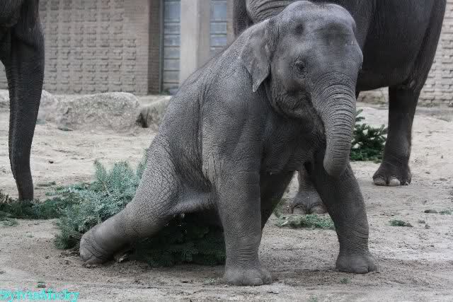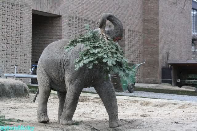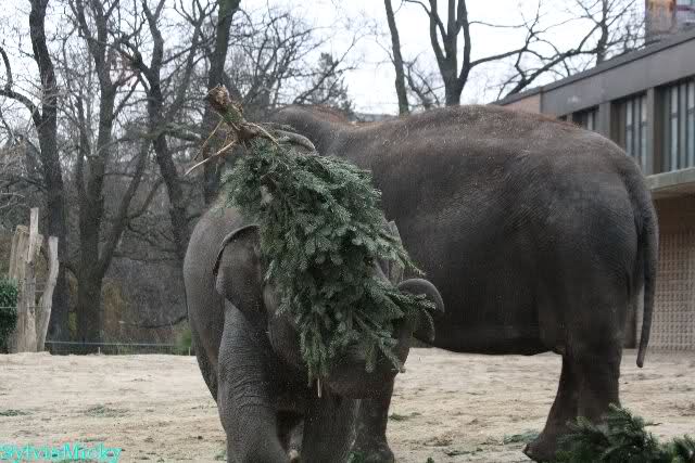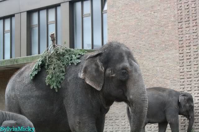 Die Elefanten bekamen heute die Tannenbäume und hatten viel Spaß damit