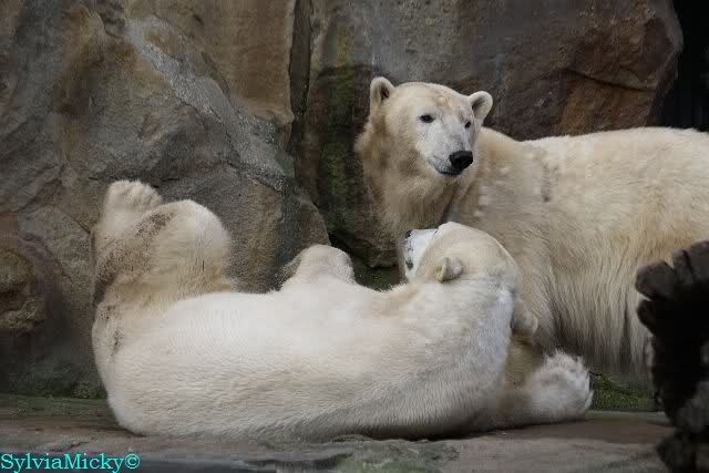 Dear Sylvia, isn't it amazing that Gianna is not falling straight in the water while benching over like that!!! Every time when I see such pics, I am becoming dizzy. And of course, no one will ever understand that she is paying more attention to the other bears than to Knut. When seeing your pics of Zoo Berlin, I start to feel more and more the need to come back and soon I will.