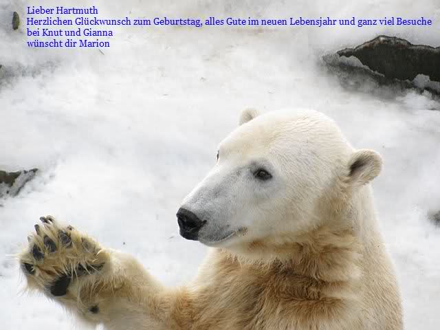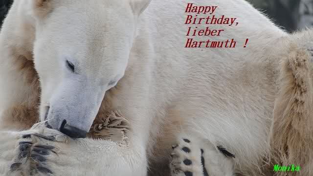 Lieber Hartmuth, ich kann mich der vorherigen Glückwünsche nur anschließen. Ich wünsche Dir vor allem Gesundheit, nicht so viel Streß und das die Bärchen nicht immer nur Sonntagsruhe halten, wenn Du sie besuchen gehst. Hab einen schönen Tag.