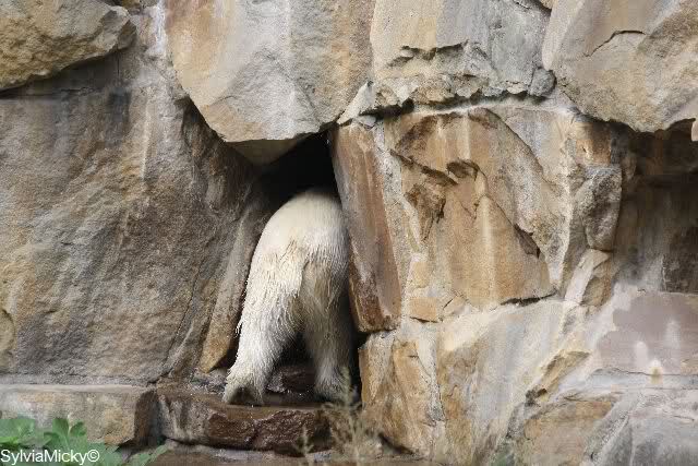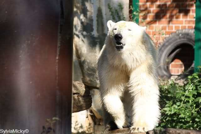 Als gestern die Besucher an Knuts Gehege "rausgebeten" wurden, war ich bei den großen Eisbären. Zu mir hat keiner gesagt, daß ich gehen soll.