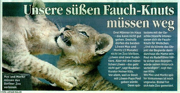Nicht zu vergessen: in Basel wurden im letzten Jahr die Löwenkinder umgebracht, weil man sie nirgends unterbringen konnte.