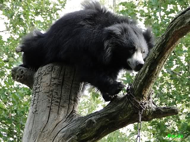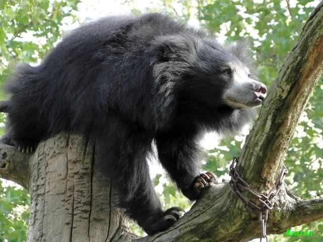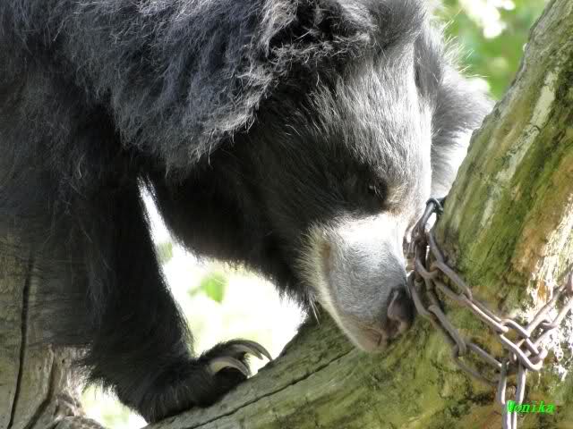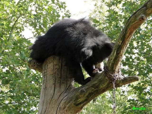 Devi zeigte uns auch heute wieder ihre Kletterkünste. Sie versuchte oben am Baum, die Kette zu lösen.