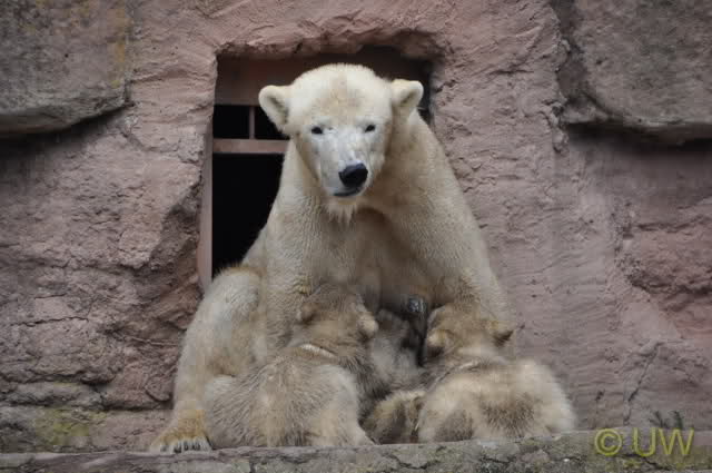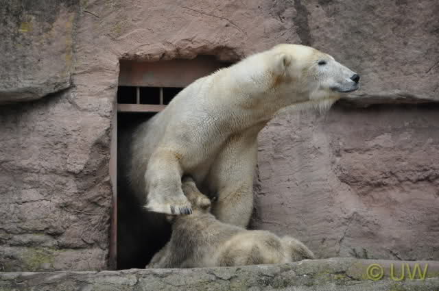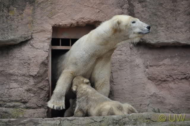 ... man hatte den Eindruck, dass Vera ziemlich müde sei, sich aber nicht zu Schlafen getraute. Sie döste im Höhleneingang, und zwar so, dass kein neugieriger kleiner Eisbär heraus konnte
