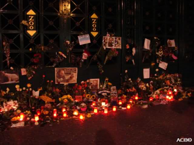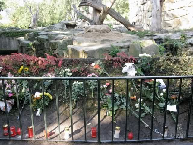 People bring more and more flowers and candles to the Zoo. This is great. And be sure the Berlin Zoo do all the best for Knut.
