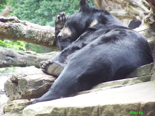Der Kragenbär mußte heute sein Futter mit vielen Krähen teilen.