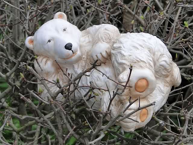 Auf der Hecke der Eisbären-Anlage lag heute Morgen vereinsamt dieser kleine Bär, der wahrscheinlich heute erst dort hingelegt wurde.