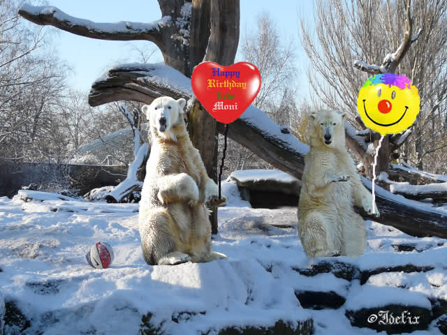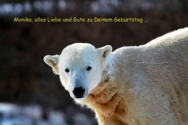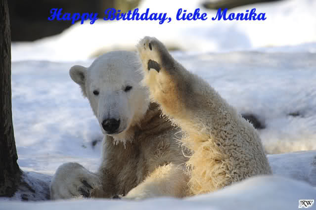 Unsere liebe "Knut-Freundin" Monika hat Geburtstag,und auch wir wünschen Dir einen traumhaft schönen Tag! Glück und Gesundheit, das Du auch weiterhin, egal wie das Wetter auch ist, so tapfer bei Knut bist, wunderschöne Bilder/Videos machst, und die Menschen erfreust, die leider nicht bei Knut sein können,"DANKE" "GIB JEDEM TAG DIE CHANCE; DER SCHÖNSTE DEINES LEBENS ZU SEIN" Deine Anne+Anke+Knut+Giovanna!!!