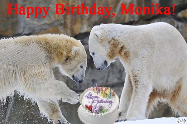 Dear Monika! My best birthday wishes to you. As you can see Knut and Gianna have baked a cake for you. Although, there's a little risk there won't be so much left of it after their thorough quality control....I wish you a wonderful day with lots of joy and happiness!
