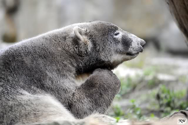 Über der Eisbärenanlage lag heute eine eigenartige Stimmung. Die Sonne schien, aber ihr Licht war fahl. Das verstärkte den eigenartig melancholischen Eindruck noch. Ich blieb bis zur Eisbärenfütterung dort stehen, die Stimmung dort passte gut zu meiner eigenen. Irgendwie erschien es mir heute nicht so wichtig, viel vom Zoo zu sehen.