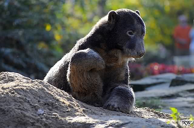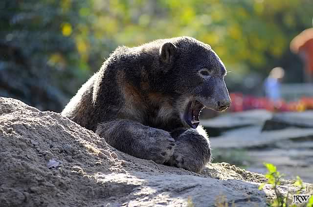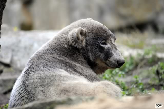 Dann ging ich zu den Malaienbären. Maika und Ernst guckten neugierig, wer da so früh schon kommt. Bhumipol interessierte das alles nicht – er hatte sich in einer Felsnische zusammengerollt.