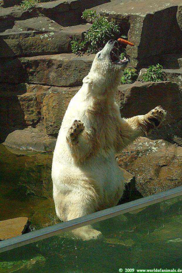 Die Eisbärenfütterung, die heute Frau Weckert machte, hatte ein besonderes Highlight. Es gab wieder weiße Mäuse. Lars verschlang eine nach der anderen, als ob es Konfekt wäre.