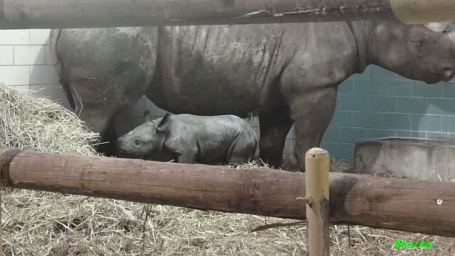 Heute war die Presse bei dem kleinen Nashorn. Bestimmt nicht angenehm für so ein junges Tier und die Mutter! Stammbesucher finden es sehr klein.