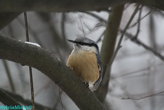 Ein Kleiber am Gehege von Knut. Es kommen immer mehr Vögel wegen der Kälte und der so lange geschlossenen Schneedecke nach Berlin.