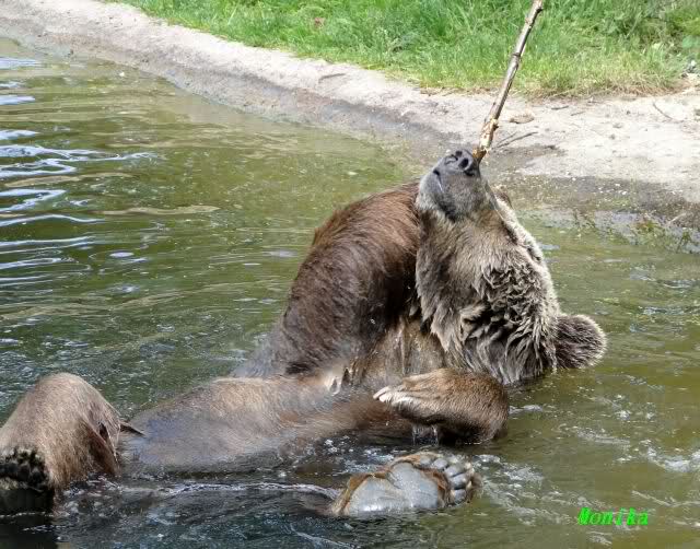 Petzi im Wasser ist lustig. Maika sieht gut aus. Was ist mit Jurgen los?