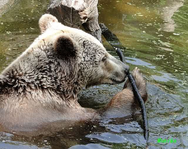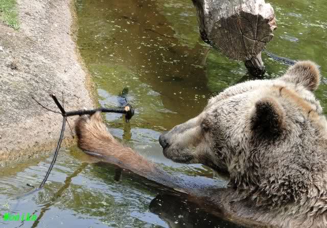 Petzi war heute lange im Wasser und hatte viel Spaß mit dem Zweig.
