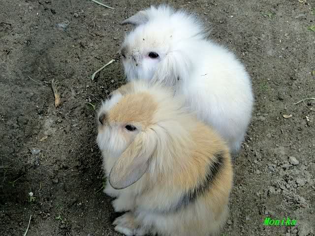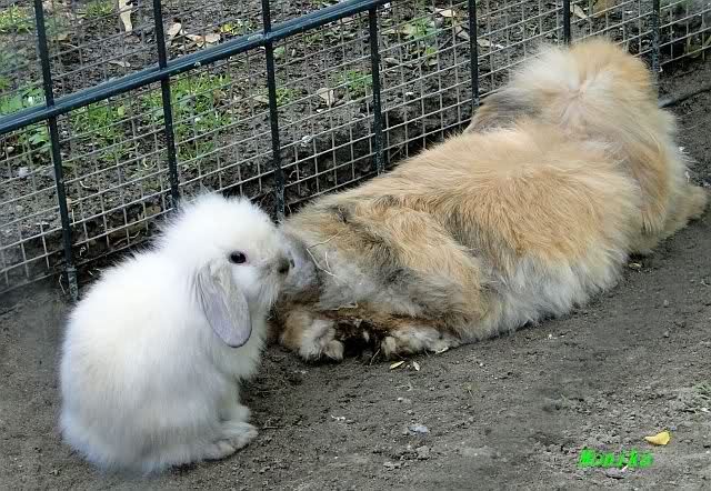 süßer flauschiger Nachwuchs bei den Kaninchen (Angorakaninchen?). Ich habe fünf Kleine gezählt.