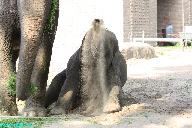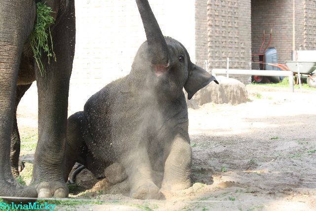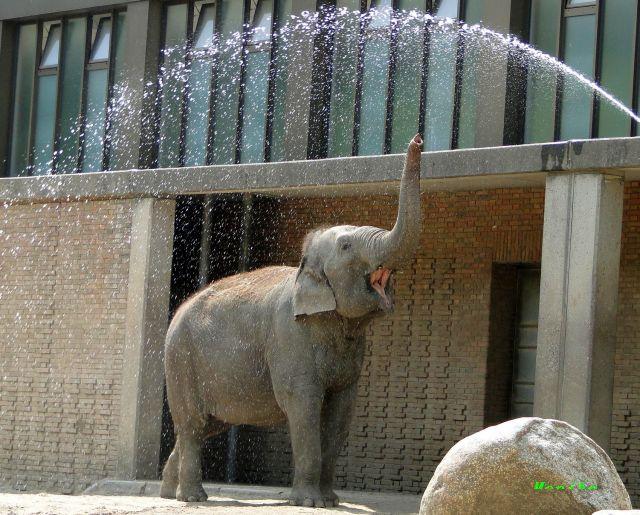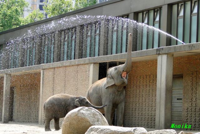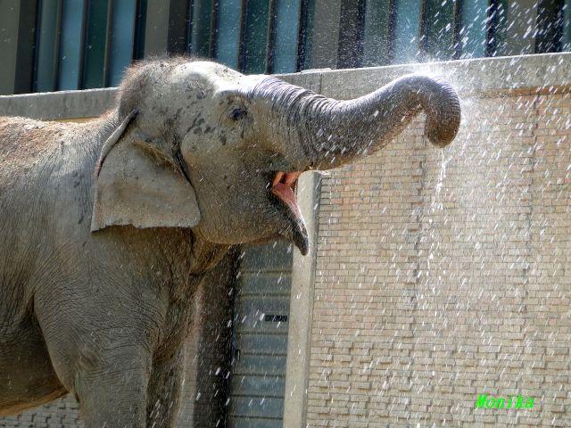 Monika, Tiere aus Afrika bekommen bei diesem schwülen Wetter eine Dusche. Wie schön.