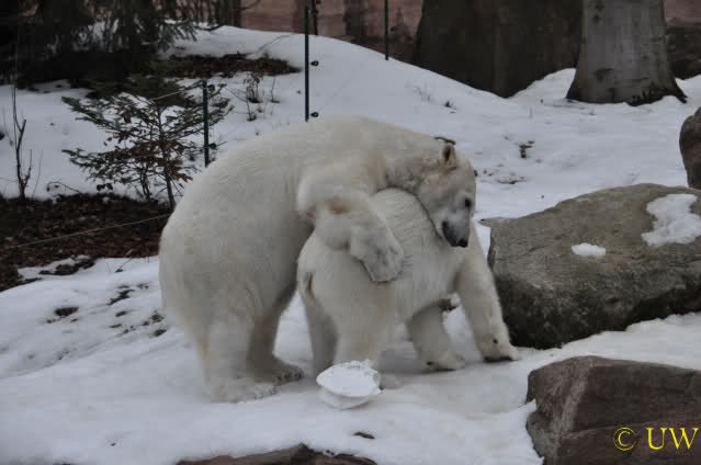 Das war das erste Mal seit längerer Zeit dass ich Flocke am Kanister nuckeln sah. Rasputin stellte sich neben sie und leckte ihr Fell ab - es sah fast ein wenig so aus als ob sie traurig wäre und er wollte sie trösten.