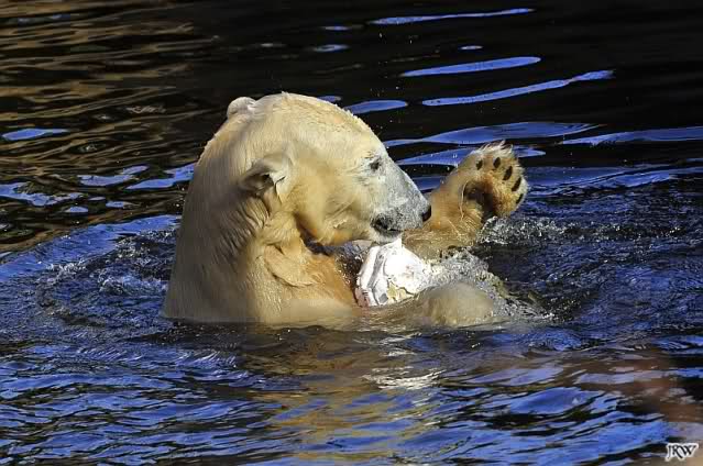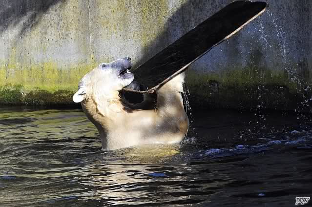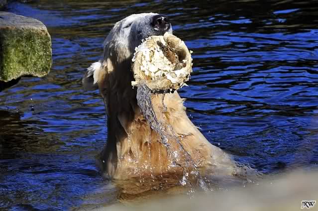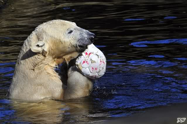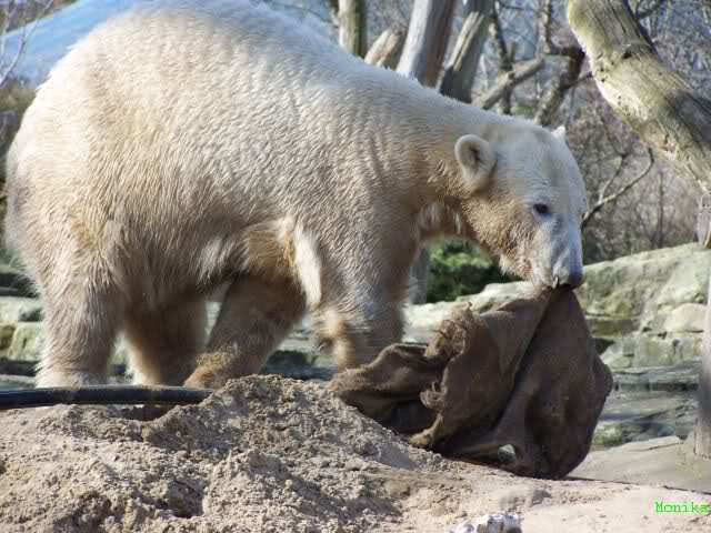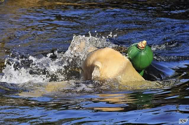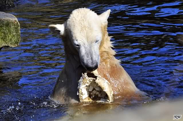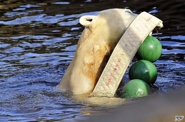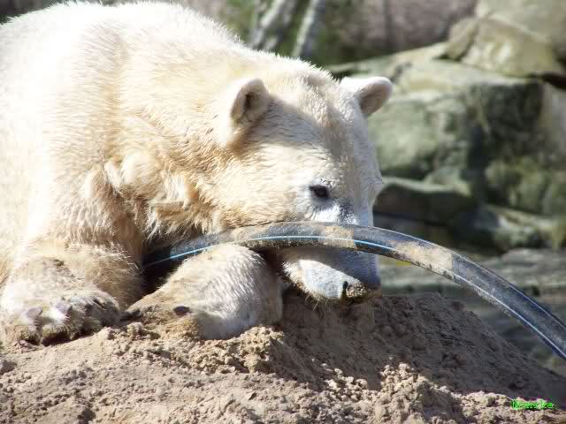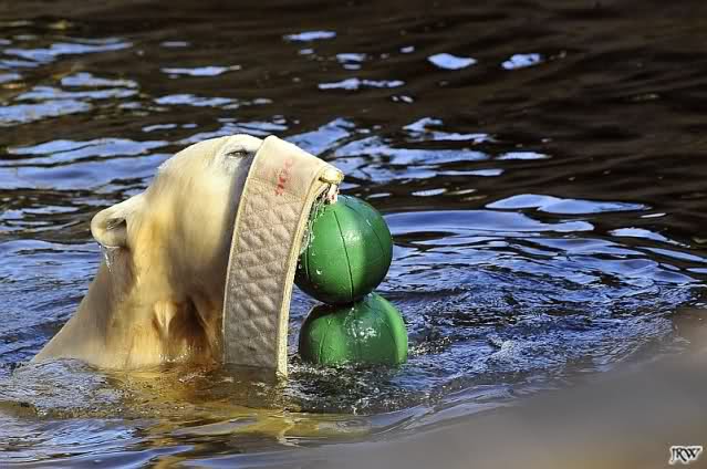 Ich glaube, Knut hat als einiges Tier im Zoo so viel Spielzeug. Über zwei Jahre verzaubert er 1000e Besucher damit, und sie sind begeistert von dem spielenden Bärchen. Knut zeigt den Besuchern was Zootiere brauchen und sie begreifen es, da sie es sehen. Nur seine Aliens, die ET's, die ihm doch nur das Beste wünschen, begreifen das nicht. Aber, warum machen sie dann so viele Bilder vom spielenden Knut?