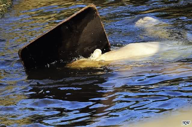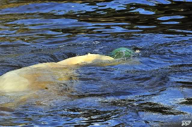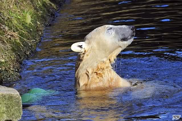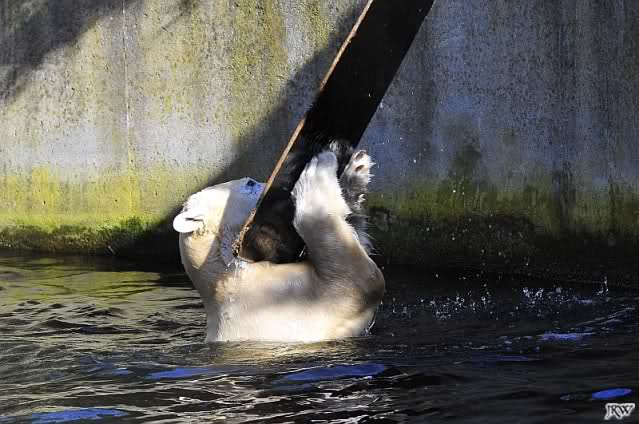 Als ich heute Morgen bei Knut ankam, war er schon im Wasser. Anschließend folgte eine Gymnastikstunde mit seinem Schlauch.