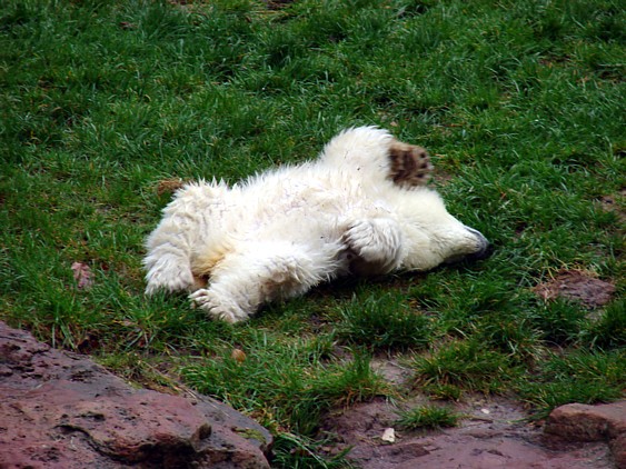 Ich hab es heute tatsächlich geschafft und war bei Flocke Ich bin gleich morgens hin und habe einen Platz direkt am Gehege ergattert, so dass ich auch Bilder machen konnte. Erstmal kam ich mir vor, wie im Hochsicherheitstrakt, an jedem Zugang zum Aquapark sind Zäune mit Durchgängen, an denen Securityleute stehen und der Zugang zu den Eisbärengehegen ist noch mal extra abgesperrt. Aber irgendwie beruhigt mich das auch, es gibt so viele seltsame Menschen auf der Welt, da muss man schon ein wenig aufpassen.