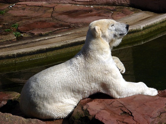 Natürlich habe ich auch Yvonne besucht. Sie schien mir heute nicht so sehr gut drauf zu sein. Möglicherweise hat sie das Wetter in den alten Knochen gespürt, mir ging es heute nämlich genauso *g* Sie hat immer wieder ein Vorderbein gehoben, als wolle sie es entlasten, das kenne ich von ihr eigentlich nicht. Als ich sie da so einsam und nicht sehr glücklich wirkend in ihrem Gehege gesehen habe, habe ich mir gedacht, dass es schon gut ist, wenn sie wieder Gesellschaft bekommt und in Rostock auch einen bequemerem Weg ins Gehege hat, so leid es mir auch tut, wenn sie geht. Sorge macht mir zwar nach wie vor, wie sie den Umzug verkraften wird, aber Dauerzustand kann das hier einfach nicht sein.