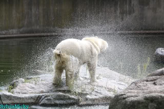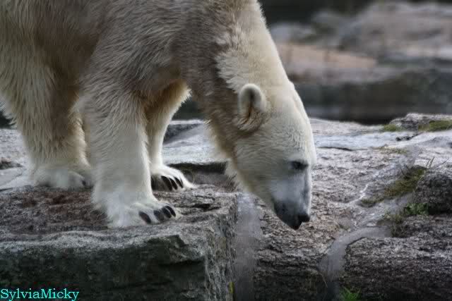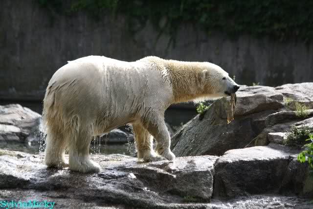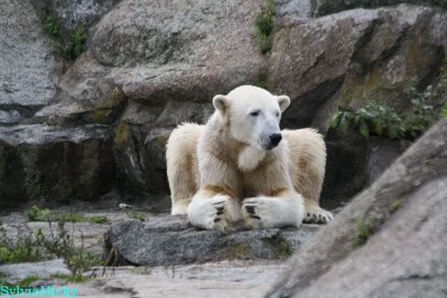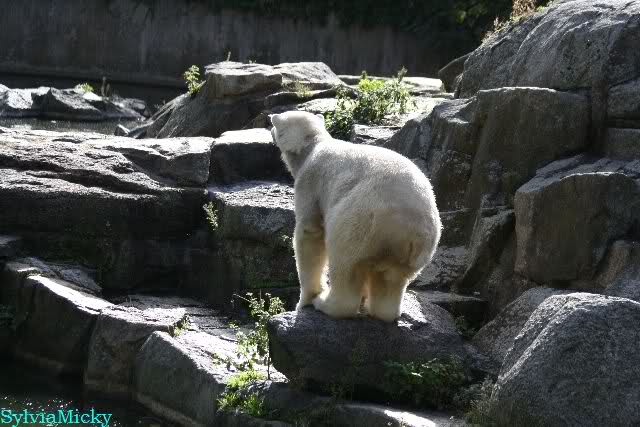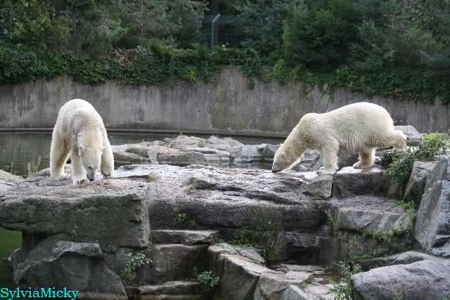 Knut lag immer noch rechts auf dem äußersten Felsen der Anlage, räkelte sich. Tosca links, auch sie räkelte sich kurz.