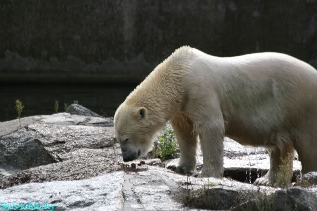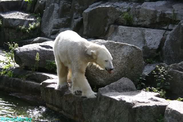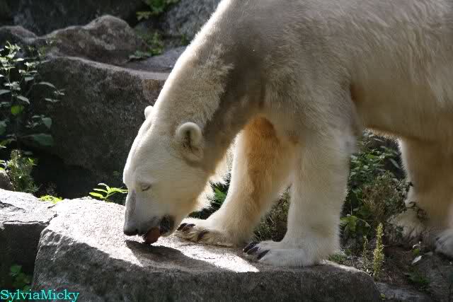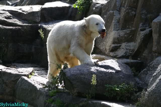 Dear Ursula, I have seen your comment about the food delivered at Zoo Berlin. And I cannot agree with your statement. As you know, Gudrun is regularly making a Bear Delivery as well as many others do. So far, I never heard somebody complaining about unfriendly reactions. During my last visit, when Patrizia from Italy was there too, she handed over a lot of goodies for Knut to Ms. Weckert and these gifts were kindly and friendly accepted. And even given to Knut the very same day. And when Ms. Weckert was giving the grapes, the fishes, the baguette and the pumpkin to Knut, she took her time so that pics could be made of that (and I made them because it was such a nice souvenir, and I am sure that sooner or later Knuti will have her ball too). By the way, if I have a question, I have to ask it in English and so far, I always got a reply (and as you know, I do not care that it is in German).