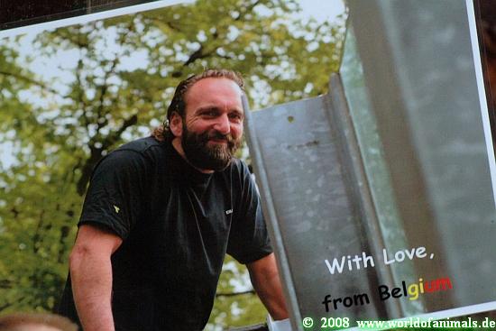 Als wir zu Knut zurückkamen, konnte man vom Bären nichts mehr sehen. Vor der Anlage standen Leute über Leute. Und Kameraleute. Also machte ich das Beste daraus. Ich sah mich vor der Anlage um, begrüßte neu angekommene befreundete Knut-Fans, und machte mich mit vielen bisher Unbekannten bekannt. In der Menge entdeckte ich Herrn Klös, den Bärenkurator, der immer wieder von Kamerateams interviewt wurde.