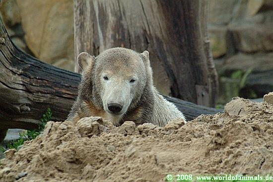 SpreewaldMarion und ich entdeckten eine kleine, erhöhte Nische zwischen der Anlage von Knut und der der Lippenbären. Man konnte von dort auch nicht wirklich gut sehen, aber ich sah gelegentlich Knuts Rücken. Auch als wenig später Frau Weckert und Herr Röbke auf die Anlage kamen, sah ich nur ihre Köpfe. Aber all das war besser als nichts.