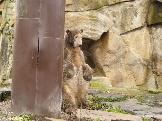 Natürlich blieb ich auch gestern meinen geliebten Nasenbären treu. Die Fütterung machte wieder Frau Weckert. Weil es bei Knut so voll war, war es bei den Nasenbären ziemlich leer.