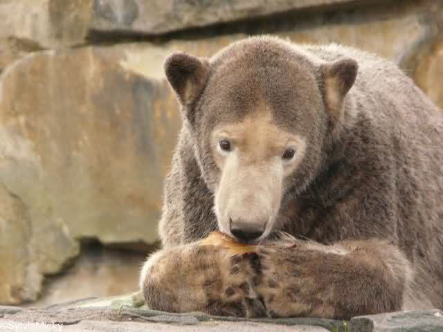 Die Braunbären bekamen gestern jeder nur einen Fisch. Herr Röbke erklärte, dass die Braunbären im Winter nicht viel essen würden. Sie bekämen aber am Abend noch etwas und würden damit in ihre Höhlen gelockt werden. Würden sie vorher zu viel bekommen, dann wären sie satt und würden sich dann nicht mehr hineinlocken lassen.
