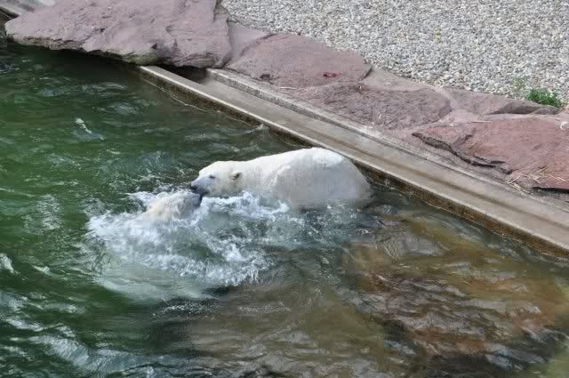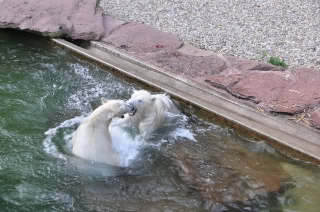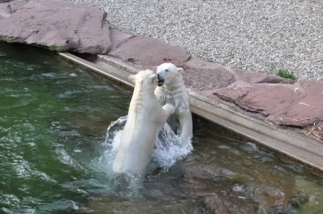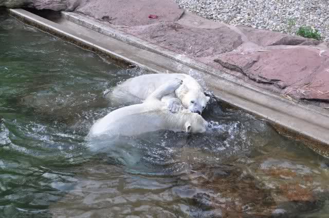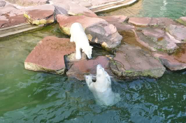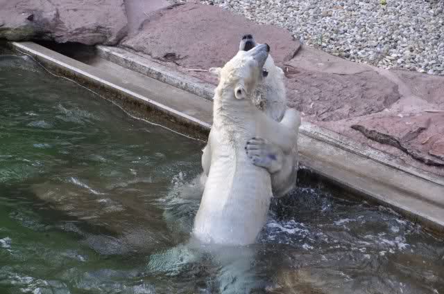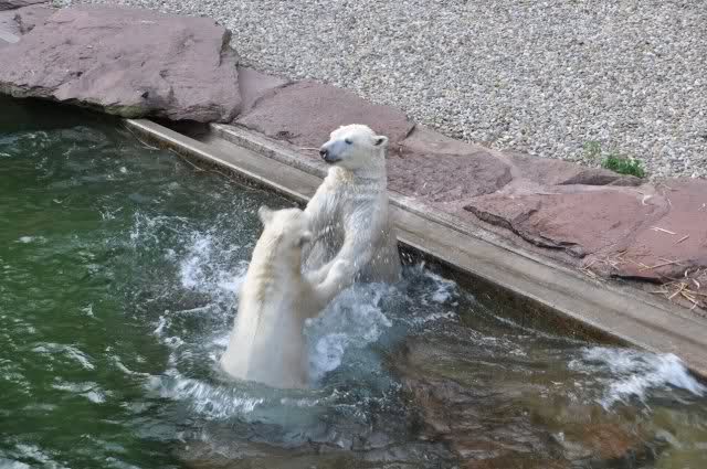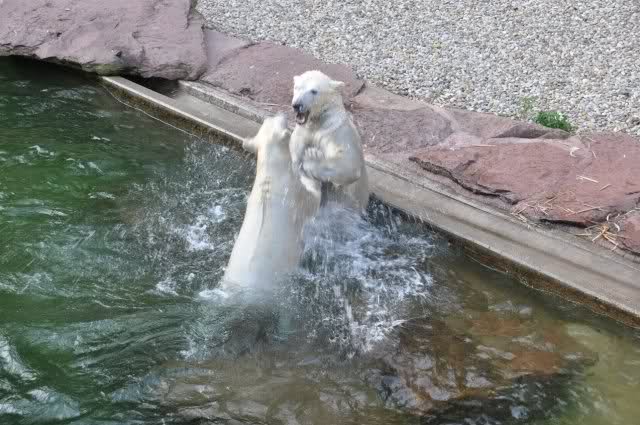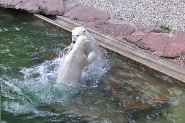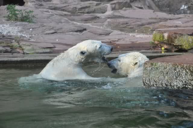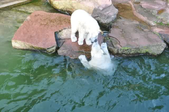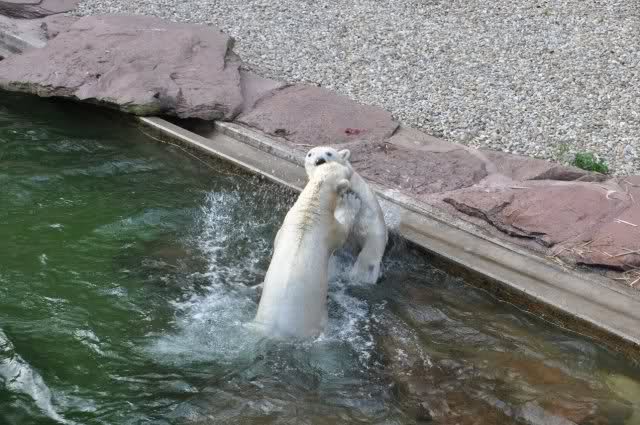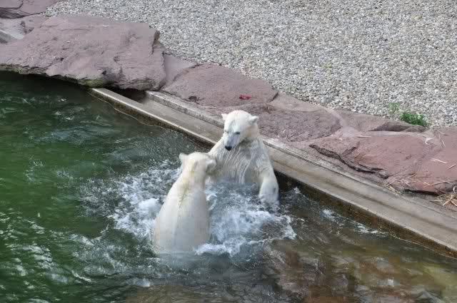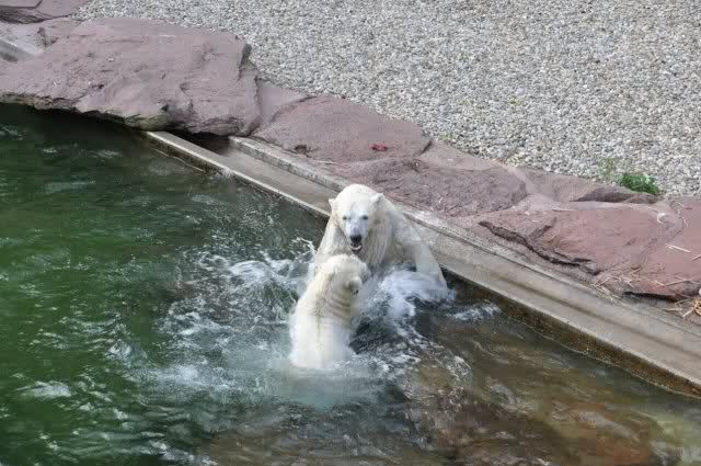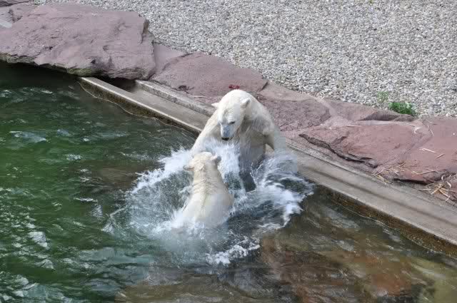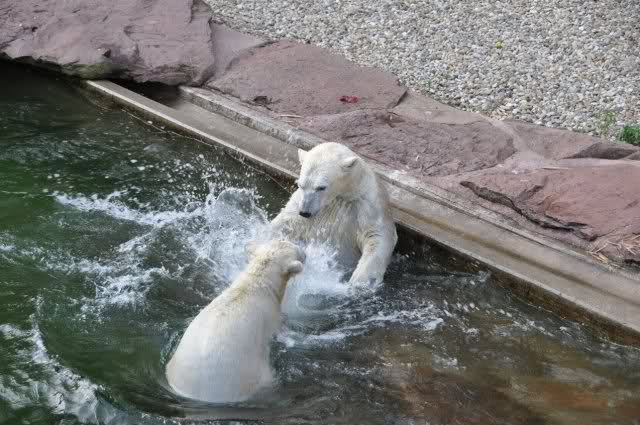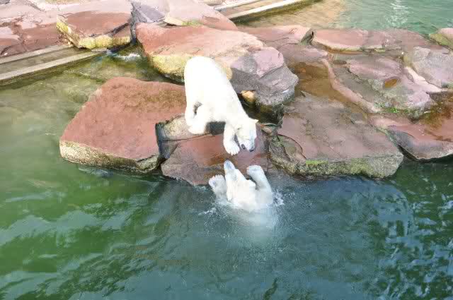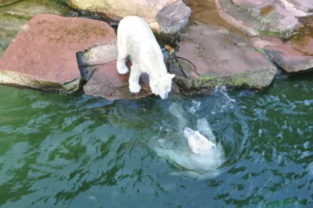 tolle Bilder habt Ihr uns wieder mitgebracht. Wir hoffen sehr, dass wir in Kürze Ähnliches bei Knut und Gianna sehen können. Allerdings wäre es in Berlin noch so viel attraktiver - wir haben so wunderschönes grünes und vitaminreiches Wasser, das den Bären bis an's Knie reicht.