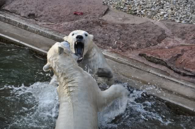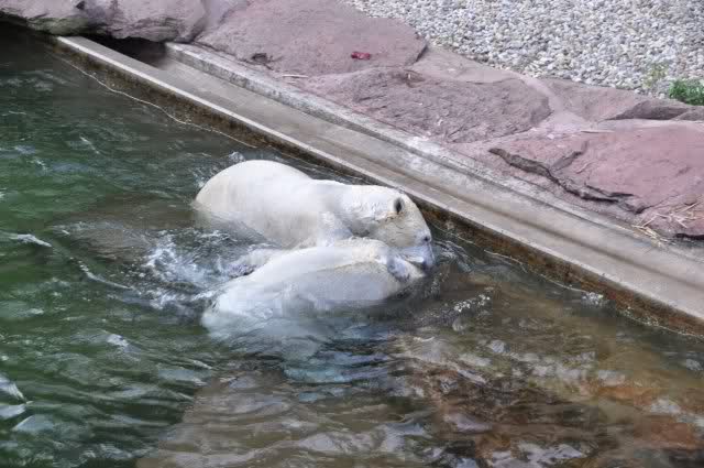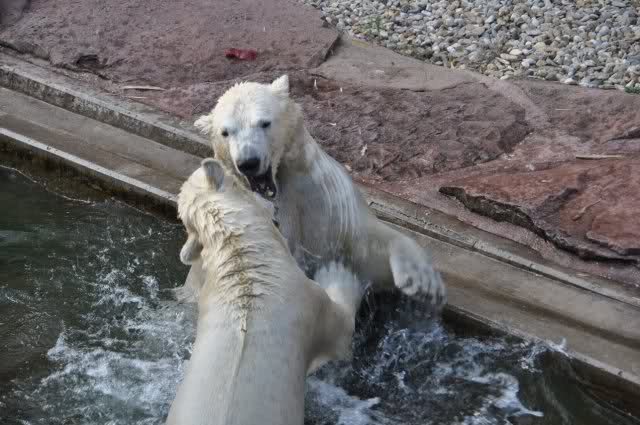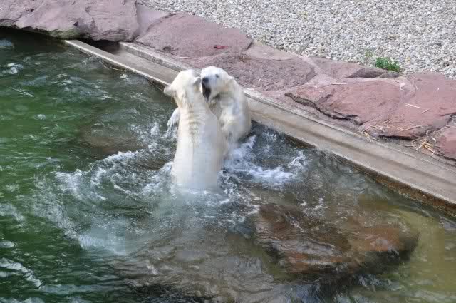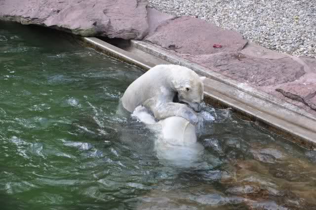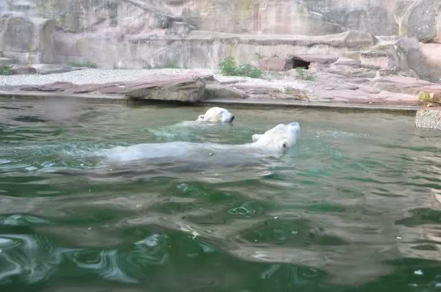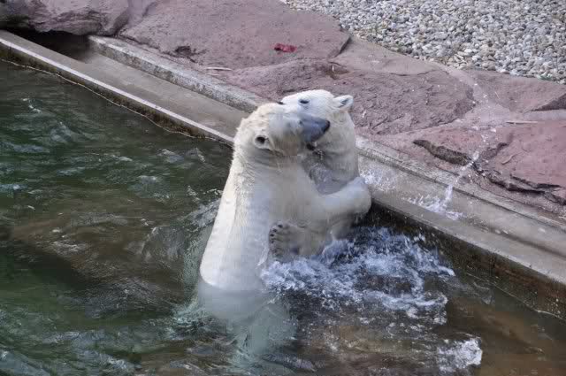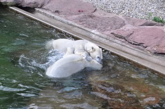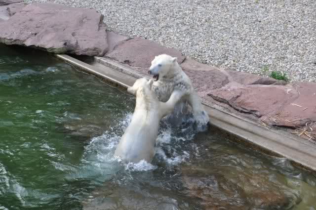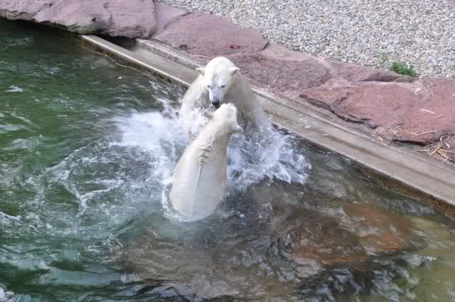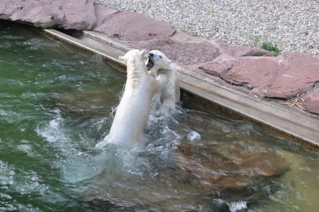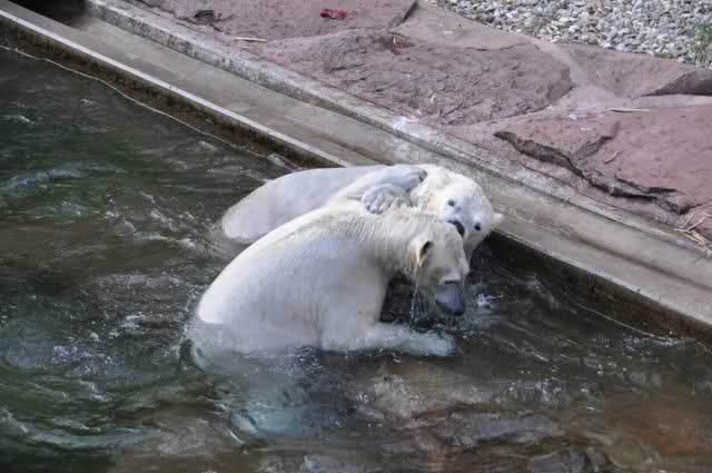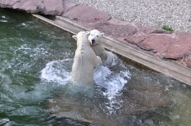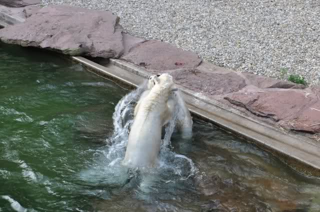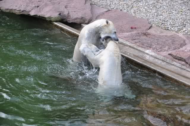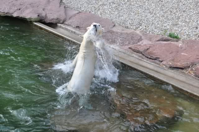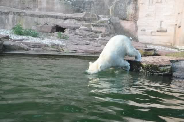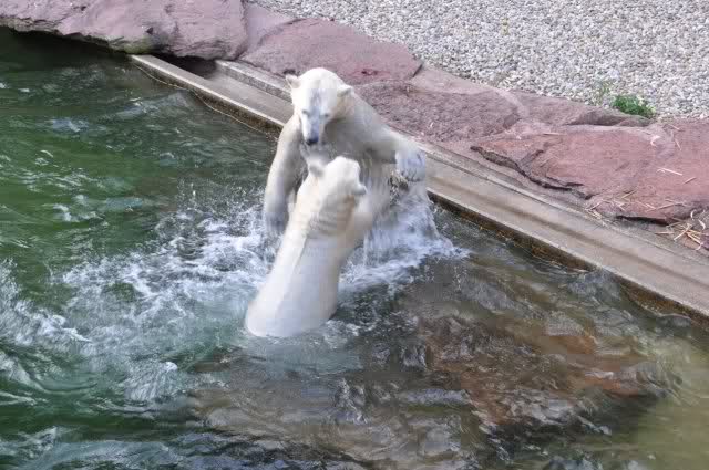 tolle Bilder habt Ihr uns wieder mitgebracht. Wir hoffen sehr, dass wir in Kürze Ähnliches bei Knut und Gianna sehen können. Allerdings wäre es in Berlin noch so viel attraktiver - wir haben so wunderschönes grünes und vitaminreiches Wasser, das den Bären bis an's Knie reicht.